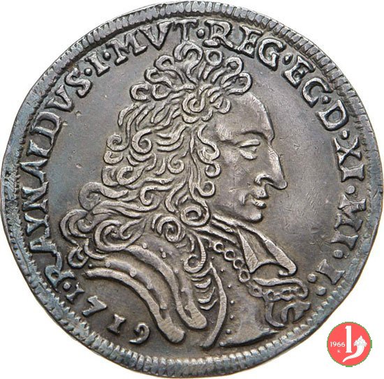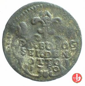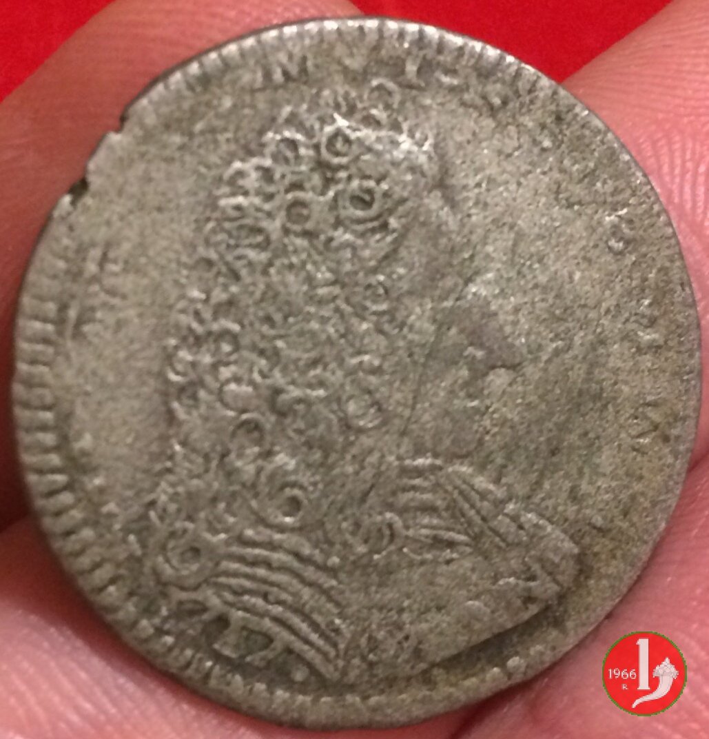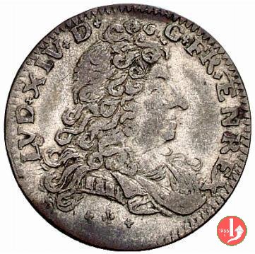 30 soldi Dritto: Busto corazzato del duca a sinistra, con lunga chioma; sotto, XXX. Stemma coronato ornato di cartocci, inquartato con le quattro aquile. | |