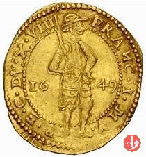 Da 8 Scudi d'oro con la Nave fra le onde busto a destra Dritto: FRANCISCUS • I • MVT • REG • E • C • DVX • VIII • Busto a destra, corazzato, con gorgiera; sotto • 1633 • Nave sulle onde: presso l'albero maestro 6 stellette a sei raggi disposte a forma di croce. | |