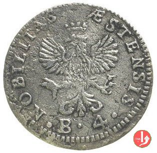 lunga capigliatura: sotto data. Aquila estense, coronata e spiegata con la testa rivolta a sinistra. Sotto • B • 4 • | |