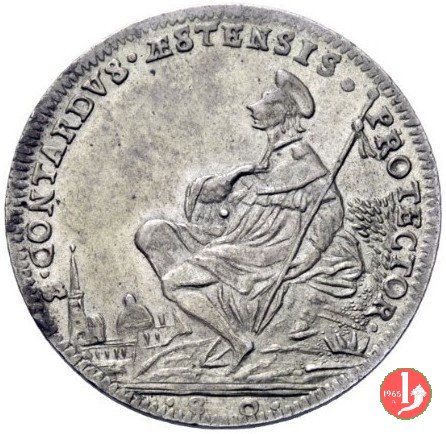 Lira con l'aquila Dritto: FRANCISCUS • III • MUT • REG • MIR • DUX • Busto del Duca rivolto a destra Aquila estense, coronata e spiegata. A sinistra, nel giro della leggenda, la data. | |