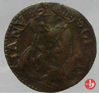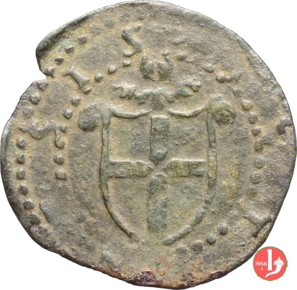 Mezzo denaro con Santo e sfera armillare Dritto: Anepigrafe Santo genuflesso a sinistra, con vessillo nella mano destra. Sfera armillare. | |
