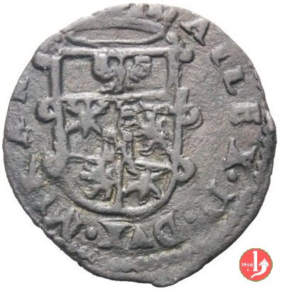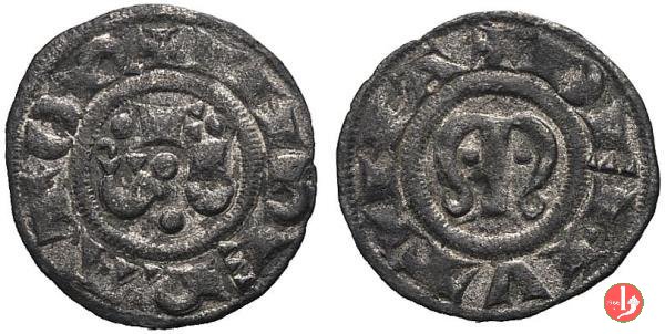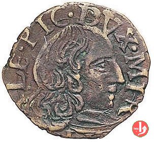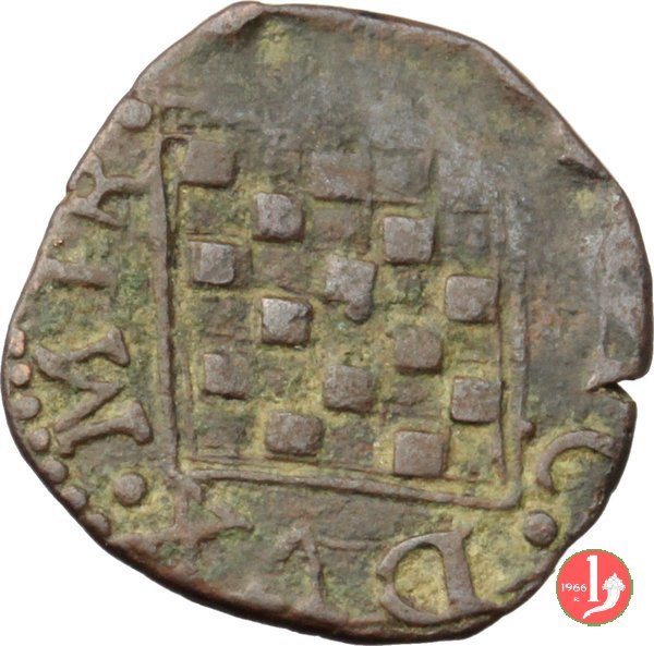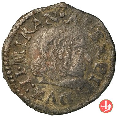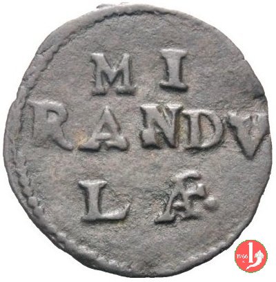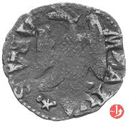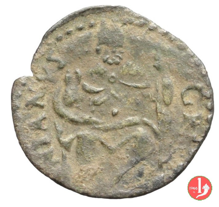 Mezzo denaro col leone rampante Dritto: ALE • PIC • DVX • MIR • II • Testa nuda a destra. Leone rampante a sinistra. | |