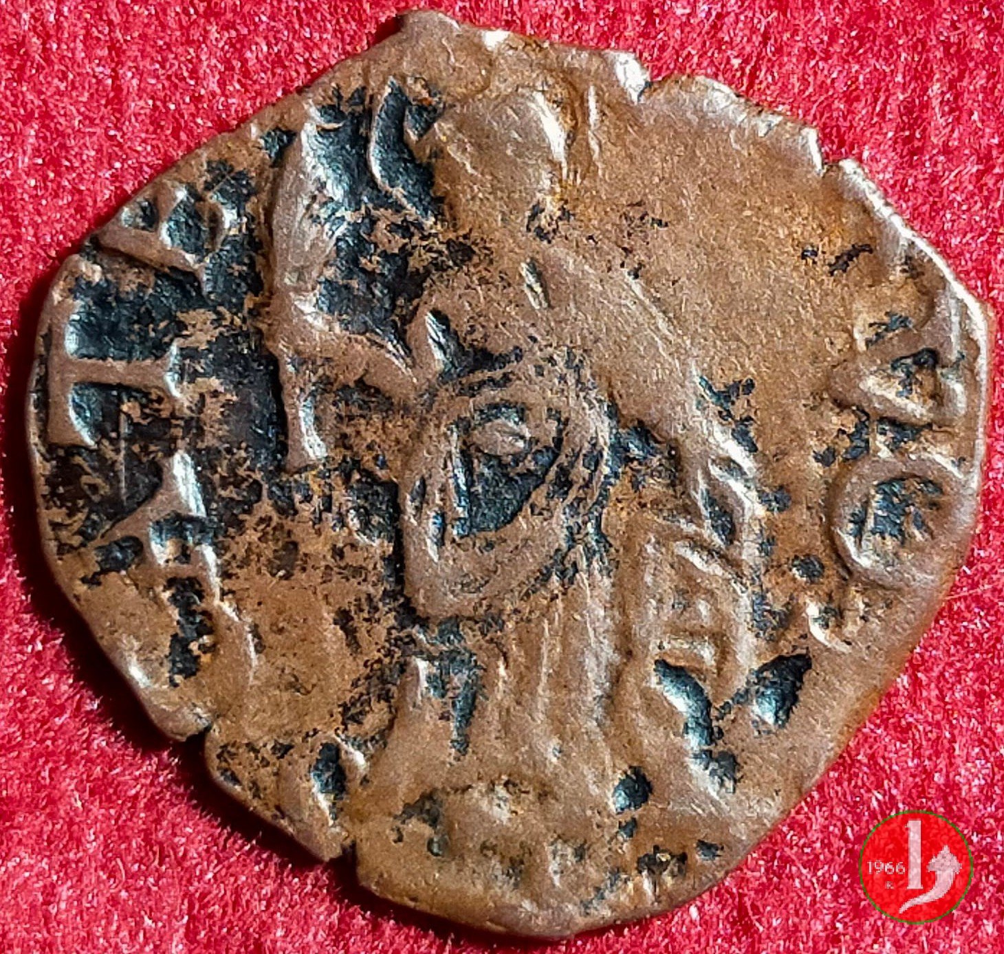 denaro piccolo con Imperator Dritto: (croce) IMPERATOR nel campo F • D • C' • disposte a triangolo attorno ad un globetto nel campo grande M gotica con 2 globetti fra le aste | |