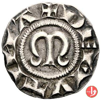 denaro Dritto: (croce) • CIVITAS • nel campo grande M gotica con globetto sull'asta centrale nel campo croce patente | |