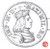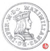 da 2 Ducati d'oro Dritto: MAXIMILIANVS • RO • IMPER • M • D • Il busto dell'imperatore rivolto a destra. La figura del santo seduto in abiti pontificali, con la mano destra sorregge la città, con la mano destra tiene il pastorale. | |