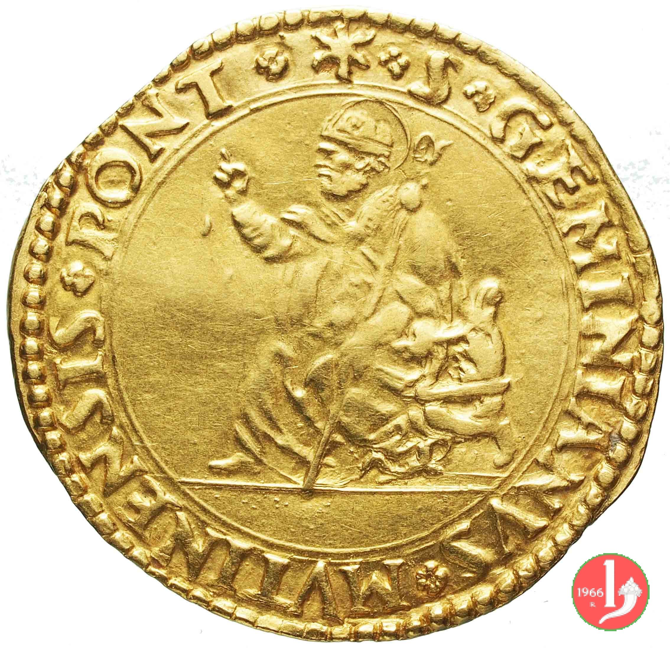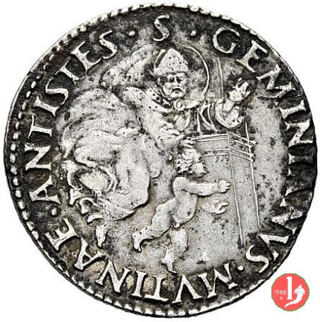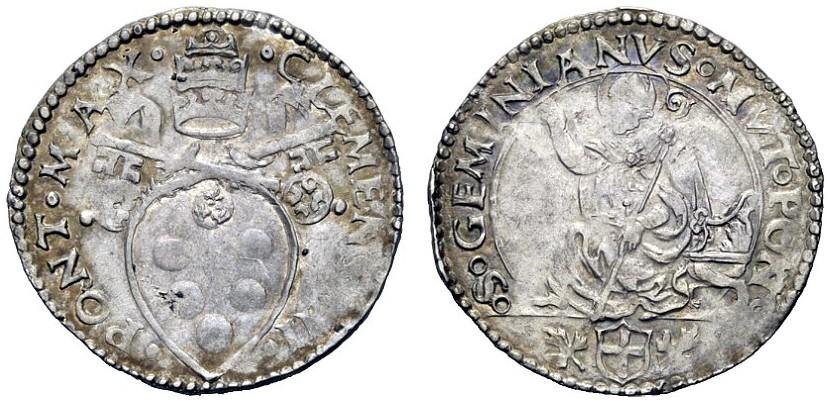 Mezzo Giulio (Grosso) Dritto: CLEMENS • VII • PONT • MAX • Stemma papale San Geminiano seduto e benedicente. In esergo stemma comunale fra due foglie. | |