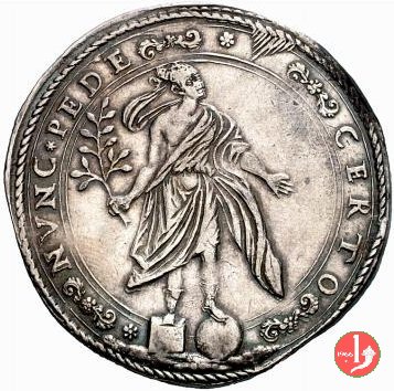 Da 24 scudi d'oro Dritto: ALEXAN * MIRANDVLÆ • DVX • I • Busto corazzato a sinistra, a testa nuda. In es., * (data) * A * R *. Stemma ornato, inquartato e coronato, caricato da scudetto Pico scaccato e circondato da collare del Toson d'oro. | |