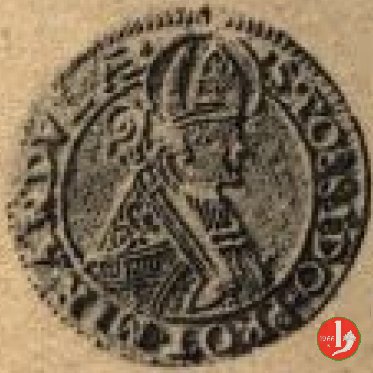 grosso Dritto: (aquila)(trifoglio) MAR (trifoglio) ChI (trifoglio) O nel campo • A • 3 • O disposti in cerchio attorno ad un globetto nel campo grande M gotica con due globetti inseriti fra le aste | |