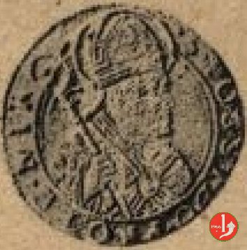 Quattrino con croce fogliata Dritto: COMVNITATIS • MVTINE • Croce fogliata. Mezza figura del Santo, di fronte, nimhato e mitrato, benedicente con la destra, e con pastorale nella sinistra. | |