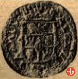 Mezzo denaro col leone rampante Dritto: S • POSID ![]() PRO • MISan Possidonio mitrato, stante di fronte, benedice con la mano destra, e tiene il pastorale con la sinistra. Leone rampante a sinistra. | |