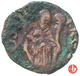 Quattrino Dritto: MVTINENSIS Scudo della città sormontato da fiore. Il santo nimbato e mitrato, seduto di fronte, bendicente con la destra e con pastorale nella sinistra. | |
