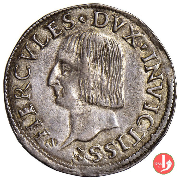 Bianco da 10 soldi (dux Ferrariae) Dritto: HERCVLES • II • DVX • FERRARIAE • IIII • Testa nuda, rivolta a destra. Stemma della città. | |