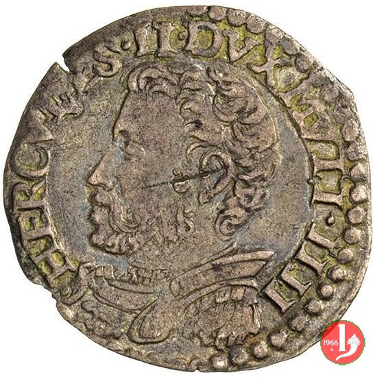Bianco da 10 soldi (dux Mutinae e stemma) Dritto: HERCVLES • II • DVX • MVTINAE • • IIII • Busto corazzato, a testa nuda, rivolto a destra Stemma del Comune,in cartella ornata di cornucopie e foglie. | |