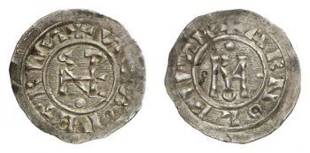 Dritto: M gotica al centro e intorno la scritta +A CON ET DVX