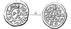 Dritto: nel centro un cerchietto co un punto concentrico; in giro IOHS DVX retrogrado