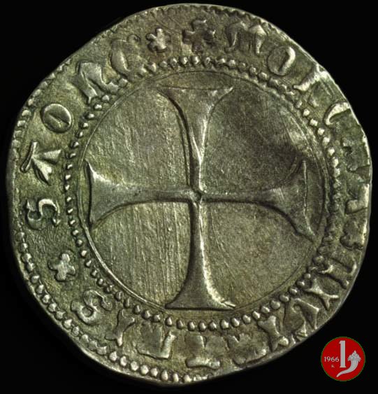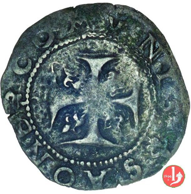 Verso: + MONETA * SAONE * : nel campo croce patente con gigli nel 2° angolo, tutto in cerchio perlinato