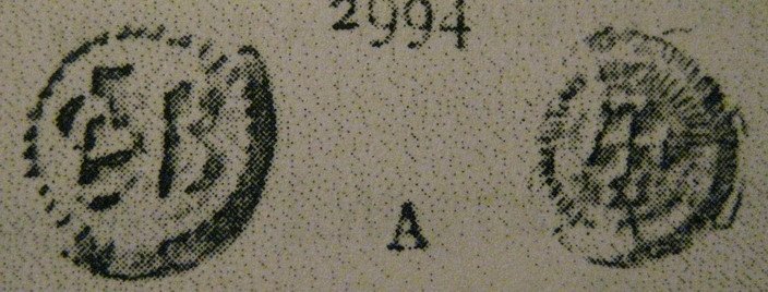 Verso: Nel campo EB in nesso, a destra crescente e lettera V, a sinistra piccola croce patente.