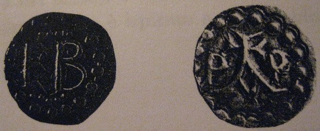 Dritto: Lettere EB (Ecclesie Basiliane) entro cerchio di perline.