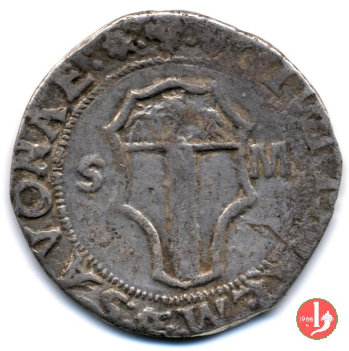 Verso: scudetto Fregoso MONETA scudetto civico SAONA o