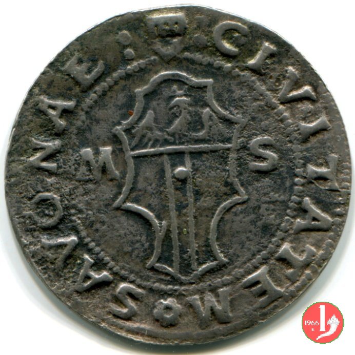 Verso: scudetto Fregoso MONETA • SAONE scudetto civico