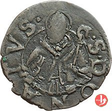 Croce piana con legatura al centro e con corona di spine intorno al braccio superiore. Nel 1° e 2° quarto sono impressi due  • , nel 3° l'iniziale del Signore della Zecca (N), nel 4° vi è