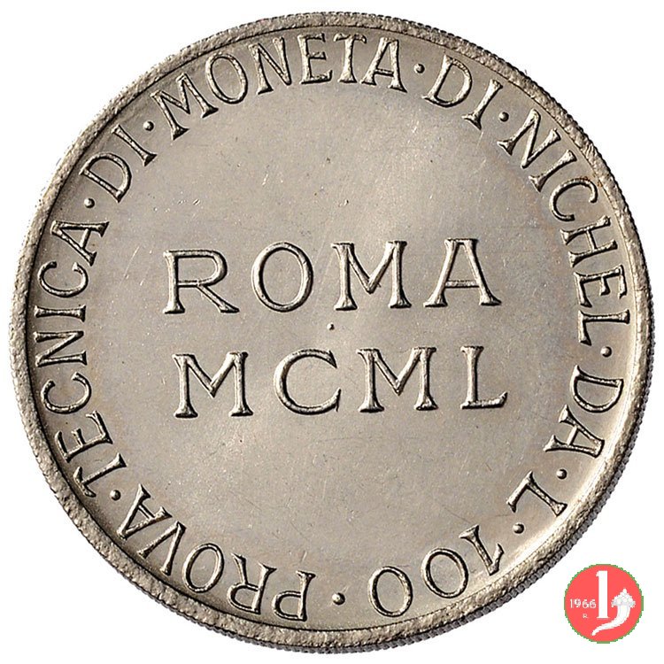 Attorno: PROVA • TECNICA •DI • MONETA •DI • NICHEL •DA • L • 50 •