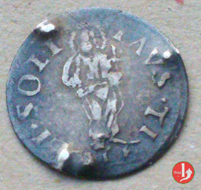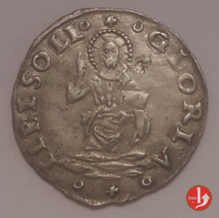 Soldino Dritto: • LEO • LAV • DVX • S • M • V • , San Marco porge il vessillo al doge inginocchiato Verso: • LAVS • TIBI • SOLI • , il Redentore stante su piedistallo su cui le iniziali del massaro | |