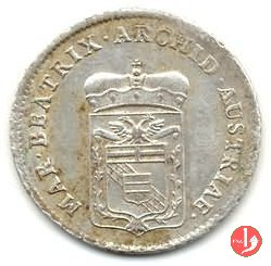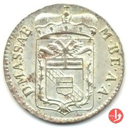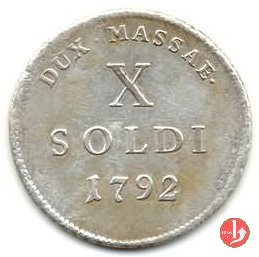 10 soldi Obverse: Stemma dei Cybo con scudetto fasciato d'Austria fra due rami di spino e sormontato da aquila bicipite austriaca. In alto corona ducale. Intorno MAR • BEATRIX • ARCHID • AUSTRIAE •. Reverse: Indicazione del valore e millesimo su tre righe (X\ SOLDI\ 1792). Intorno, nella parte superiore, DUX • MASSAE •. |