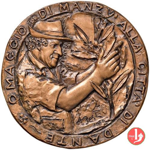 Centro Dantesco a Giacomo Manzú 1988 Dritto: busto a dx di Manzú con cappello e giacca lavora con scalpello in basso: BUCCI nel campo, su rami d'alloro: GIACOMO MANZU' | |