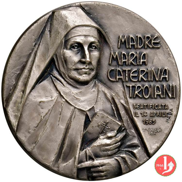 Maria Caterina Troiani 1985 Dritto: Busto di 3/4 a dx con velo e abito talare nel campo a dx: MADRE= CATERINA= TROIANI= BEATIFICATA = IL 14 APRILE= 1985 in basso a dx: DAMIANO COLOMBO & Figli a dx presso il bordo: MABA | |
