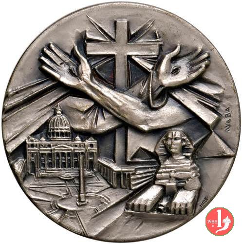 S. Faustino - B. V. M. di Costantinopoli 1964 Dritto: B. V. M. DI COSTANINOPOLI = - S. FAUSTINO 10.V.1964 VITERBO - busto della B. V. Maria coronato, velato e nimbato, regge il bambino Gesú coronato e benedicente | |