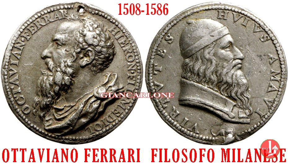 Ottaviano Ferrari e Aristotele Dritto: OCTAVIAN • FERRAR HIERON • FIL • MEDIOL Busto con folta barba volto a sx Busto di Aristotele volto a dx | |