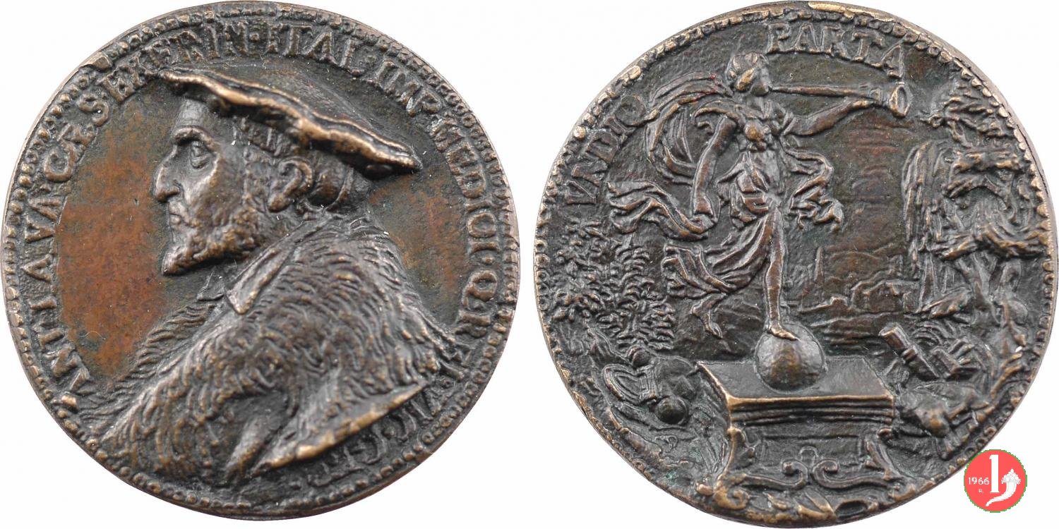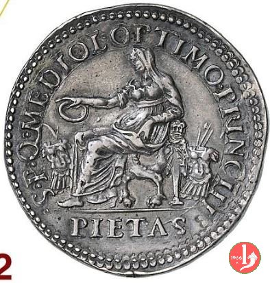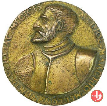 4- Gian Giacomo Medici Dritto: IO • IAC • MEDICES _ MEDIOL. MARCHIO • MELEGNANI. MDLV • Busto corazzato a sx lupo disteso a terra verso sx, presso palma | |
