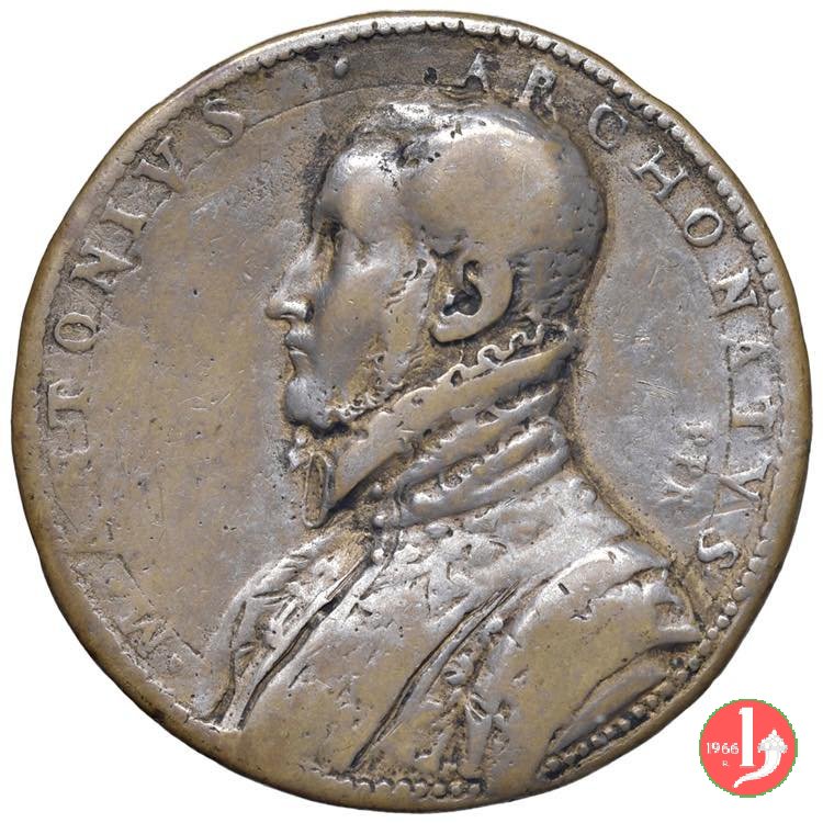 Antonio Calmona Dritto: ANTONIVS _ CALMONE • AET • AN • = 34 busto a dx con barba e giubba con collare alla spagnola nel campo a sx: PPR arbusto cresce tra rovi | |