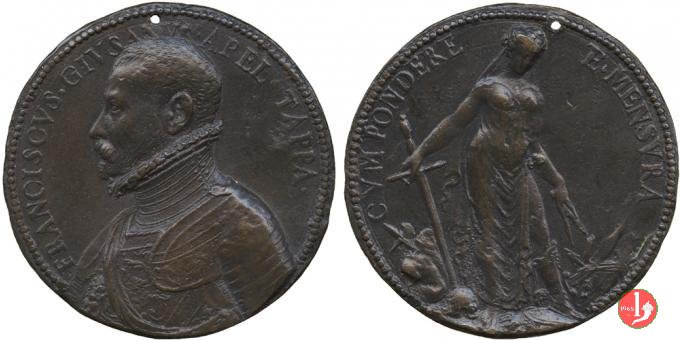 Francesco Giusani 1566 Dritto: FRANCISCVS • GIVSANVS • APEL • TAPPA • busto corazzato a sx figura allegorica velata in piedi regge compasso e spada | |