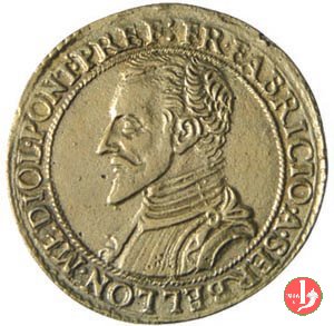 Fabrizio Serbelloni Dritto: FR • FABRICIO • A • SERBELLON • MEDIOL • PONT • PREF busto corazzato a sx vista di città con fiume e imbarcazioni | |