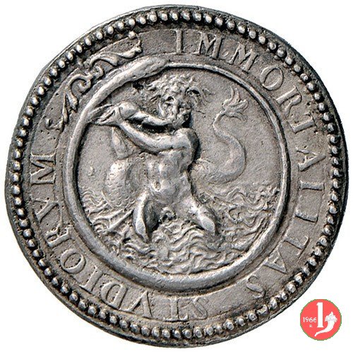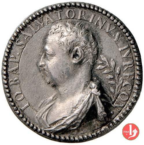 Giovanni Battista Salvatorini Dritto: IO BAP • SALVATORINVS IVRECON • busto a sx con mantello a dx: ramo d'alloro entro serpe che si morde la coda figura mitologica uomo-pesce, suona conchiglia | |