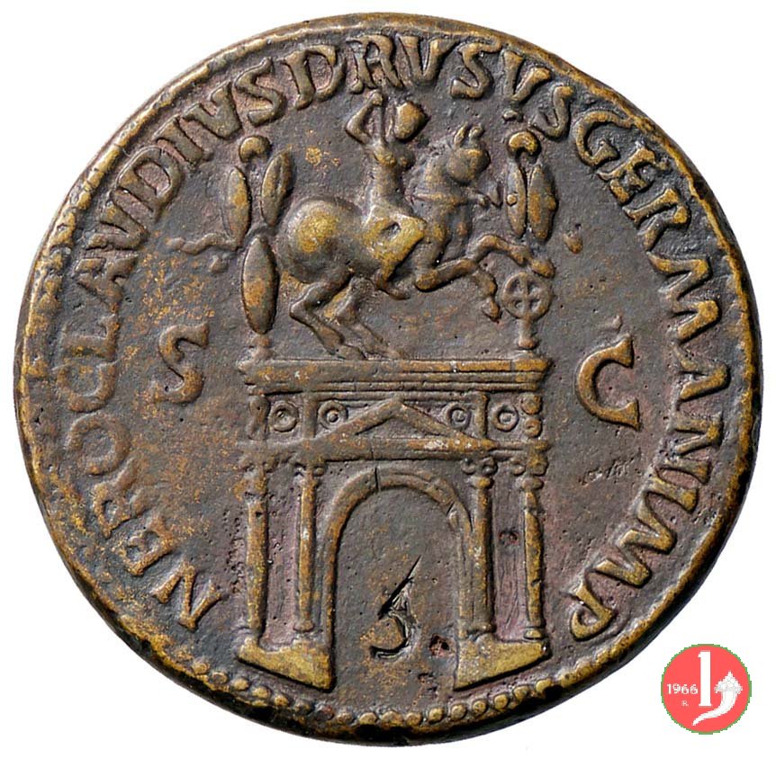 Claudio (41-54 dc) -L14 Dritto: _ • TI • CLAVDIVS • CAESAR • AVG • P • M • TR • P • IMP • P • P • testa laureata a dx Arco trionfale sormonatto da statua equestre volta a dx ai lati: S _ C | |