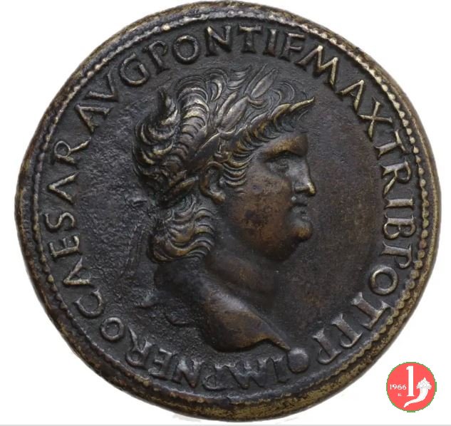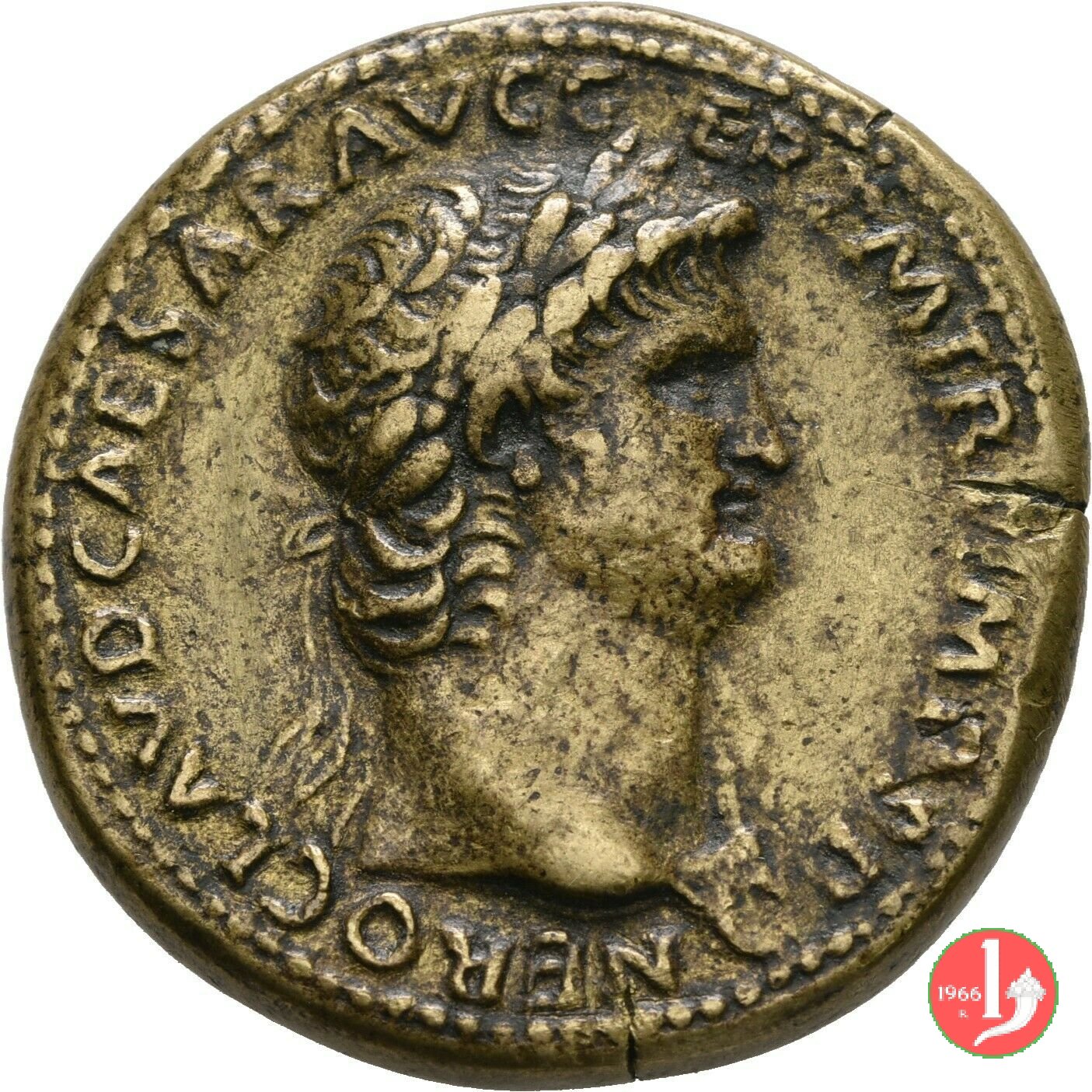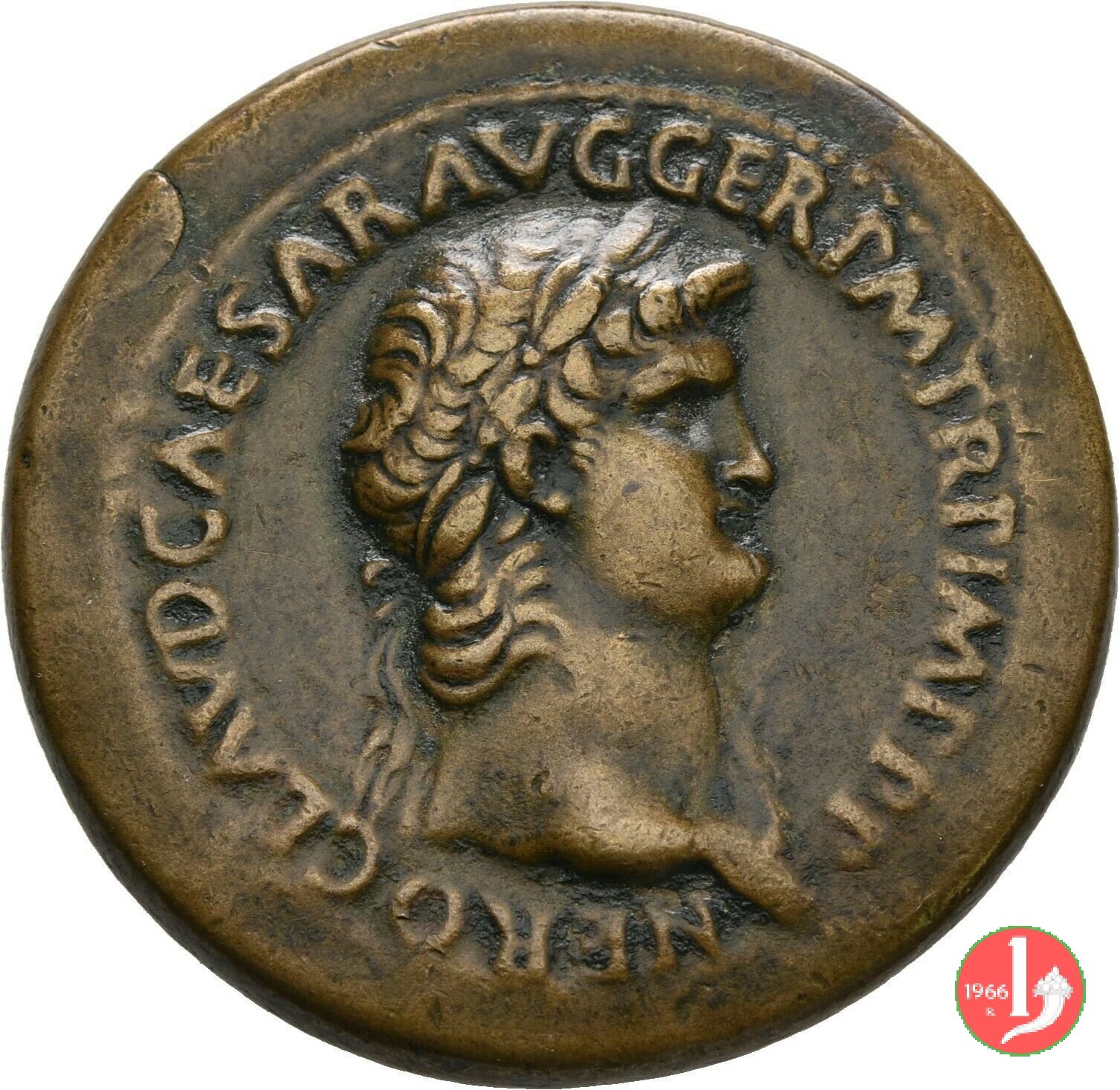 Nerone (54-68 dc) - Annona e Cerere -L16 Dritto: NERO CLAVD CESAR AVG G _ ER PR TM P IMP testa laureata a dx ai lati di altare: Cerere seduta regge torcia e spighe di grano e l'Annona con cornucopia in esergo: S C | |