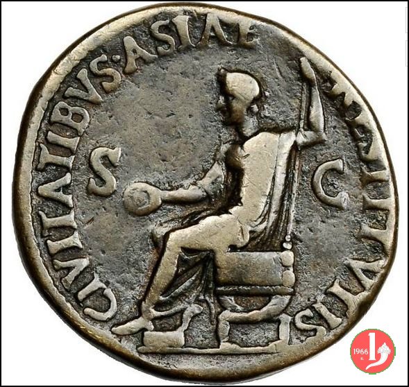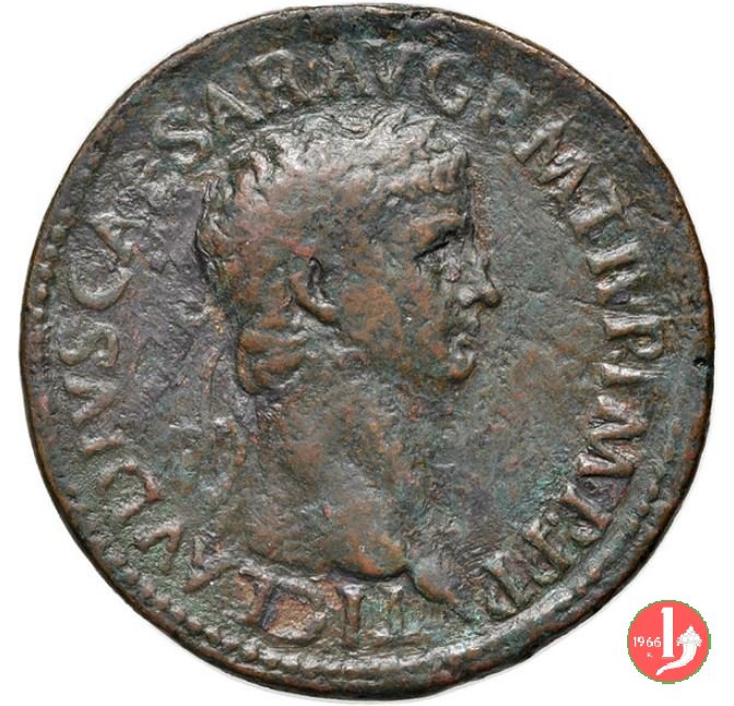 Tiberio (14-37 dc) Dritto: TI • CAESAR • DIVI • AVGVSTI • IMP • VIII testa a sx figura allegorica, seduta verso sx, regge serto d'alloro e asta ai lati: S _ C | |