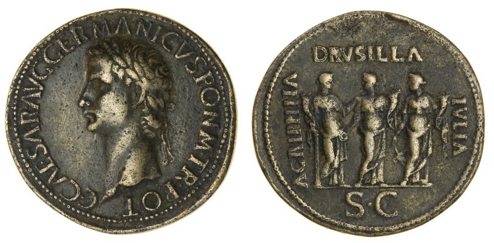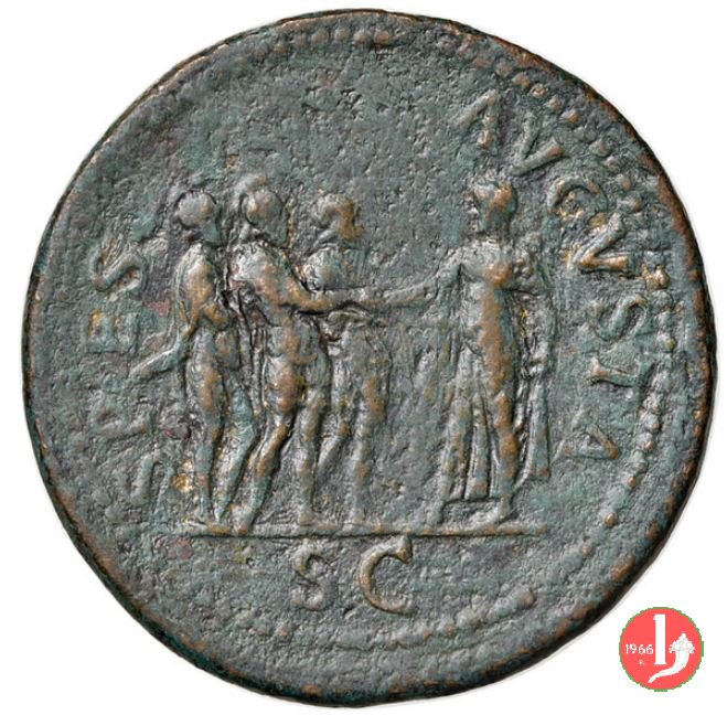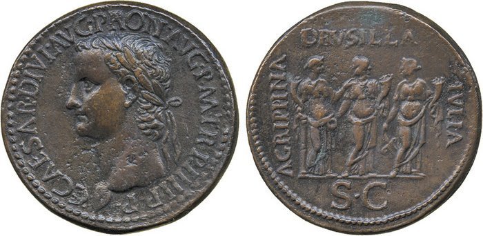 Caligola (37-41 dc) -L9 Dritto: CAESAR • DIVI • AVG • PAON • AVG • PMTRPIIIIP busto a sx le tre figure femminili in piedi con cornucopie in esergo: S C | |