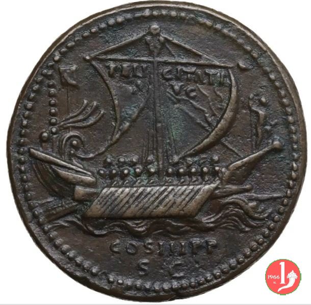 Adriano (117-138 dc) -Galera -L47 Dritto: HADRIANVS _ AVGVSTVS busto corazzato e paludato a dx con barba sulla vela: FELI _ CITATI = A _ VG in esergo: COSIIIFP = SC | |