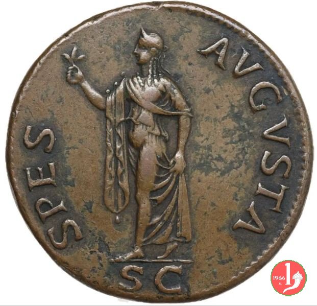 Adriano (117-138 dc) -Spes augusta Dritto: HADRIANVS _ AVG COS III PP busto nudo a dx la figura allegorica della Speranza in piedi, velata e gradiente a sx regge ramoscello e si tiene la veste in esergo: SC | |