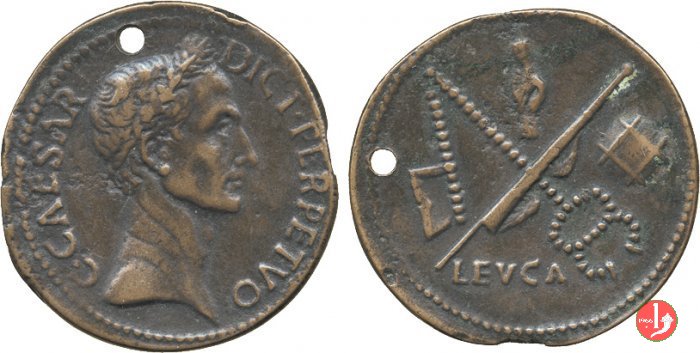 Giulio Cesare (100-44 ac) -Leuca -L2 Dritto: C • CAESAR _ DICT • PERPETVO busto laureato a dx in basso: LEVCA | |