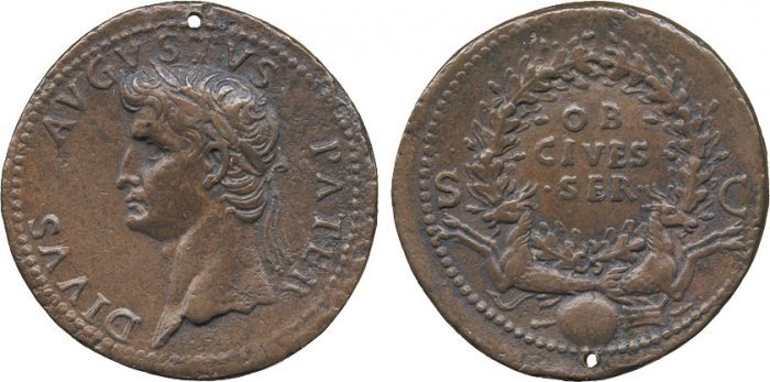 Augusto -L4 Dritto: DIVVS AVGVSTVS PATER testa laureata a sx in basso due cervi contrapposti rampanti ai lati: S _ C | |