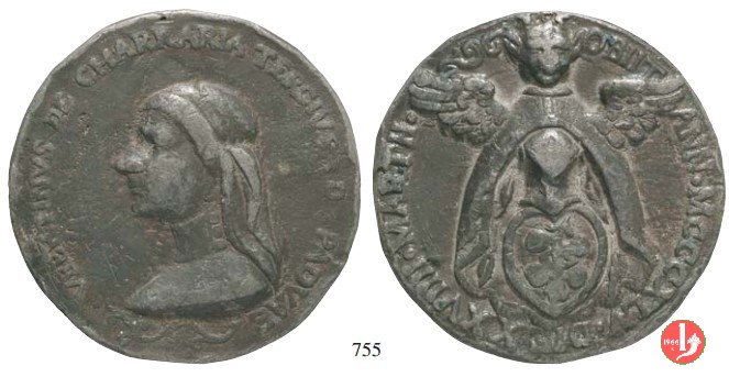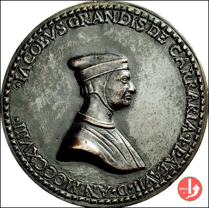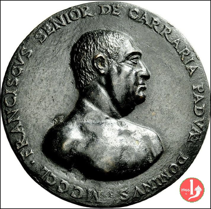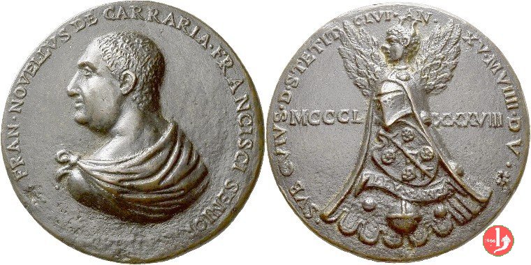 Francesco II da Carrara Dritto: (in caratteri gotici) EFFIGIES • DNI • FRANCISCI IVNIORES DE CARRARIA PAD • busto nudo a dx entro cornice lobata: Logo dei Da Carrara con carro | |