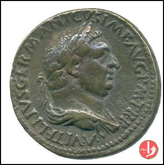 Vitellio (69 dc) -L27 Dritto: _ • A • VITELIVS GERMANICVS IMP • AVG PM TRP busto laureato a dx la figura allegorica della Fortuna con cornucopia saluta legionario elmato | |