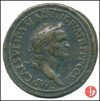 Vespasiano (69-79 dc) - Ivdaea capta -L30 Dritto: IMP T CAES VESP AVG P M TR P P P COS VIII testa laureata a sx L'Imperatore in piedi rivolto verso dx a figura femminile seduta tra trofei d'armi presso palma in esergo: SC | |