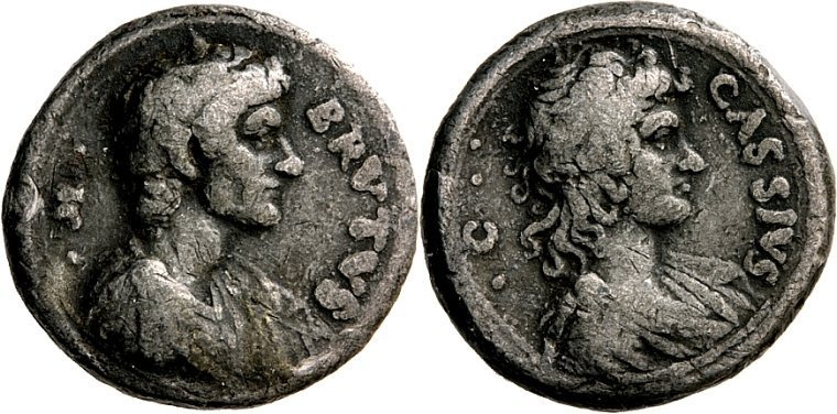 Bruto e Cassio (85-42 ac) Dritto: BRVTVS _ • M • testa a dx testa a dx | |