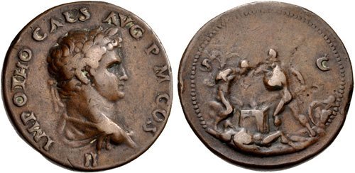 Ottone (69 dc) Dritto: _ • IMP OTTO CAESAR • AVG TRI • POT busto nudo a dx ai lati: S _ C in esergo: COH | |